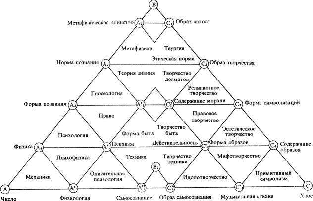 Система символизма представлялась поэту в виде мировоззренческой пирамиды, гранями которой должны служить наука и религия, поэзия и естествознание, философия техники и философия искусства, познание и творчество. В вершине пирамиды, по мысли Белого, сойдутся монизмы: материализм, идеализм, рационализм, позитивизм, мистицизм, при этом модуляцией послужит история философии и культуры. Поддерживаемый собратьями по движению (особенно редактором «Весов» В. Я. Брюсовым) в художественных экспериментах, стилистических поисках и в журнальной полемике с оппонентами, Белый оказывался в полной изоляции, как только выходил за рамки проблем литературной школы и обращался к вопросам метафизики и диалектики, гносеологии, психологии творчества, философии культуры. Все пожимали плечами, когда поэт, бросив стихи про кентавров, заводил речь о «плотности энергии» и пытался приложить это понятие к эстетическим категориям. «Наукообразность» теоретических построений Белого, его тяготение к жанру трактатов – с обстоятельным научным аппаратом, чертежами, схемами и формулами – все это отталкивало почитателей поэтического дара автора «Золота в лазури» и «Пепла». «Вообще попытка Андрея Белого сойти с “пути безумий” на строгий путь критической мысли не могла не закончиться полной неудачей»[10] – такое суждение не раз высказывалось в символистских кругах. «В теоретических интересах я был одинок…»[11] – горестно сознавал Белый.