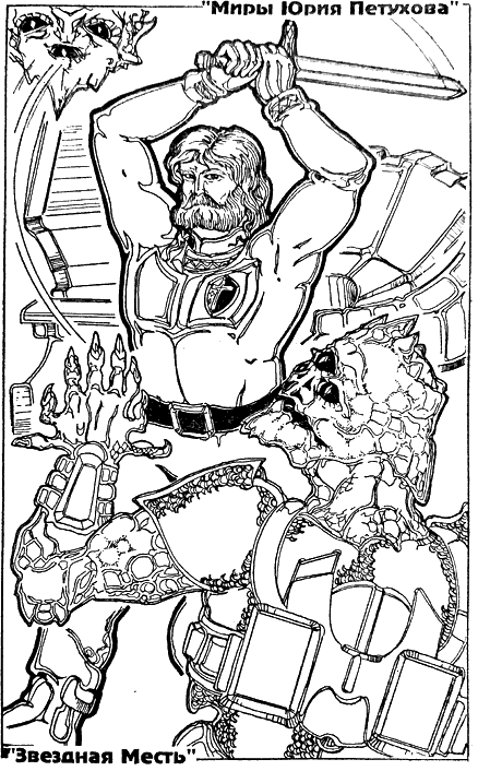 Многим нашим читателям запала в душу графика Романа Афонина. Особенно взволновал приславших письма реализм рисунка из серии «Героика колонизации Янтарного Гугона». Что за тема? Откуда? Почему?! Каждому, внимательно вглядывавшемуся в рисунок, обязательно приходила в голову совершенно четкая мысль: эдакое невозможно нафантазировать! это картинка с натуры! Да, полное впечатление, что художник присутствовал при изображенных им событиях – попробуйте-ка нарисовать столь натуралистично пробудившегося от ледниковой спячки гугонского мугыгра (птицелапого червя-антропофага)! Но это иллюзия, ибо Роман Афонин никогда не был на Янтарном Гугоне. Лишь один раз в четыре с половиной года, когда Земля и Гугон находятся в фазе трансцендентального противостояния, перед художником встают реальные картины гугонского бытия. Подобным даром обладают единицы из землян. Почему мы решили рассказать обо всем этом? Теперь, когда филиал Комиссии по Контактам с Неземными Сообществами частично легализован на Земле, мы можем открыть людям правду. Уже четвертое столетие идет невероятное по своей напряженности, зачастую необратимо-трагическое освоение одной из самых непостижимых планет Мироздания – Янтарного Гугона. Решение о начале колонизации планеты-призрака было принято Внегалактическим Советом Высших Цивилизаций достаточно давно, не менее восьми тысячелетий назад. Однако оказалось, что во Вселенной есть места (данное слово не совсем подходит, так как планета-призрак не занимает какого-либо определенного места, этот чудовищный ускользающий изо всех ощущаемых и видимых измерений мир не поддается словесному описанию), где бессильны даже существа, достигшие высшей степени могущества. Представители всех цивилизаций Совета, а также биомутанты, генокиборги и прочие разумные, псевдоразумные и неживые создания Внешнего мира выявили на Гугоне свою несостоятельность. Четыре века назад был принят последний Проект Освоения призрачного мира с использованием земной биомассы. Путем экстрансплантации человеческих зародышей и выращивания их в экстремально-сверхъестественных условиях на одной из промежуточных планет-баз был создан восьмисоттысячный, полностью обновляемый каждые шесть лет (цикл полного уничтожения гугонской средой) Передовой Отряд. Ежегодный десант на Гугон земных колонизаторов-камикадзе составлял и составляет до нашего времени контингент численностью не менее трехсот тысяч выращенных вдали от родной планеты человеко-особей. Около двухсот восьмидесяти тысяч из них погибают в первые два-три дня после внедрения на планету-призрак. К концу третьей недели выживают не более сорока-тридцати десантников. До высадки следующей партии умудряются уцелеть лишь один-два героя-колониста. Несчитанные миллионы землян отдали свои жизни, штурмуя из десятилетия в десятилетие чудовищную планету-призрак, загадочный Янтарный Гугон. И за все эти века никто на Земле не вспомнил про подвижничество своих сынов и дочерей, вырванных из лона планеты-матери! Мы больше не имеем права молчать! На краю собственной гибели Земная Третичная цивилизация сама должна вспомнить о всех, гибнущих за ее пределами и при ее молчаливом согласии. Первобытное ничтожество нашей земной науки и созданной ею техники не дают нам возможности физически достичь ни планет-баз, 