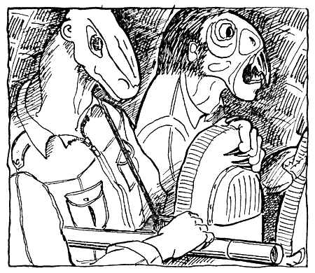 – Слушайте, комиссар, мне ничего не стоит разглядеть ту маску, что вы напялили на себя, ясно?! Но на этой твари не было никаких масок! Я это видела даже в темнотище! А когда вдруг вспыхнуло освещение, когда наши прожектора ее ослепили, я чуть не грохнулась в обморок. Вы видели когда-нибудь чешуйчатого ящера на картинках?