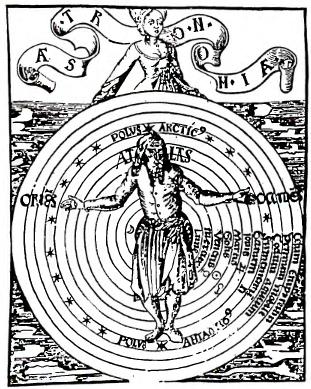 Рис. 3. Титан Атлант. Гравюра для книги «Маргарита Философика» Ж. Рейха, издание 1535 года «Лес в изобилии давал все, что нужно для работы строителям; а равно и для прокормления домашних и диких животных. Даже слонов на острове водилось великое множество, ибо корму хватало не только для всех прочих живых существ, населяющих болота, озера, реки, горы или равнины, но и для этого зверя, из всех зверей самого большого и прожорливого. Далее все благовония, которые ныне питает земля, будь то в корнях, в травах, в древесине, в сочащихся смолах, в цветах или плодах, – все это она рождала там и отлично взращивала… Всякий пестуемый человеком плод и злак, который мы употребляем в пищу или из которого готовим хлеб, и разного рода овощи, а равно и всякое дерево, приносящее яства, напитки или умащения, всякий непригодный для храпения и служащий для забавы и лакомства древесный плод, который мы предлагаем на закуску пресытившемуся обедом, – все это тогдашний священный остров под действием солнца порождал прекрасным, изумительным и изобильным. Пользуясь этими дарами земли, цари устроили святилища, дворцы, гавани и верфи и привели в порядок всю страну, придав ей следующий вид. Прежде всего они перебросили мосты через водные кольца, окружавшие древнюю метрополию, построив путь из столицы и обратно в нее. Дворец они с самого начала выстроили там, где стояло обиталище бога и их предков, и затем, принимая его в наследство, один за другим все более его украшали, всякий раз силясь превзойти предшественника, пока в конце концов не создали поразительное по величине и красоте сооружение. От моря они провели канал в три плетра шириной… в длину на пятьдесят стадиев[3] вплоть до крайнего из водных колец – так они создали доступ с моря в это кольцо, словно в гавань, приготовив достаточный проход даже для самых больших судов. Что касается земляных колец, разделявших водные кольца, то они прорыли каналы, смыкавшиеся с мостами, такой ширины, чтобы от одного водного кольца к другому могла пройти одна триера, сверху же они настлали перекрытия, под которыми должно было совершаться плавание: высота земляных колец над поверхностью моря была для этого достаточной. Самое большое по окружности водное кольцо, с которым непосредственно соединялось море, имело в ширину три стадия, и следовавшее за ним земляное кольцо было равно ему по ширине; из двух следующих колец водное было в два стадия шириной и земляное опять-таки было равно водному; наконец, водное кольцо, опоясывавшее остров в самой середине, было в стадий шириной». Гримальдийский грот относится ко времени примерно на 10 тысяч лет раньше расцвета и гибели Атлантиды. Это заря цивилизации атлантов. Поэтому интересно следить за развитием этой цивилизации по Платону. «Камень белого, черного и красного цвета они добывали в недрах срединного острова и в недрах внешнего и внутреннего земляных колец, а в каменоломнях, где оставались двойные углубления, перекрытые сверху тем же камнем, устраивались стоянки для кораблей. Если некоторые свои постройки они делали простыми, то в других они забавы ради искусно сочетали камни разного цвета, сообщая им естественную прелесть. Стены вокруг наружного земляного кольца они по всей окружности обделали в медь, нанося металл в расплавленном виде, стену внутреннего вала покрыли литьем из олова, 